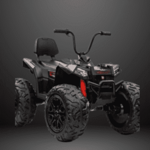 24V kids’ ATV with 4×4 drive for smooth traction across grass, beaches, cement, and rubber tracks.